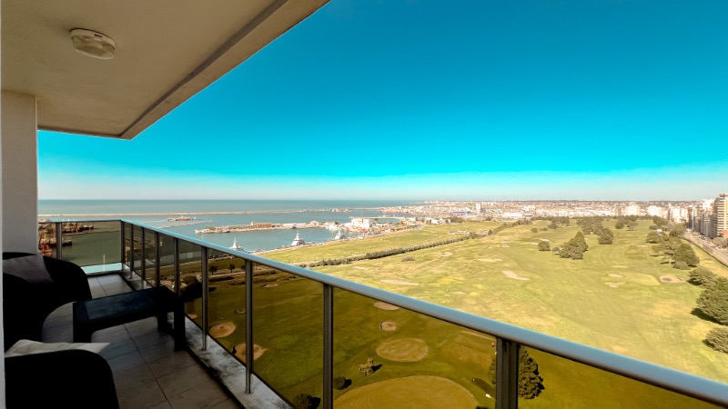 Excelente departamento frente al golf y mar. Piso alto. Cochera cubierta y baulera. Sauro Propiedades.Comedor Dormitorio en suite Hidromasaje Solarium Sala de juegos Agua corriente Desaguee cloacal Luz Toilette Sotano Lavadero Publico Suite Portones electricos Agua Potable