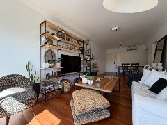 Departamento 3 amb, a la calle. Edificio en torre. Posee cochera cubierta. Se encuentra en un piso alto. Reciclado, amoblado y equipado listo para vivir o alquilar: