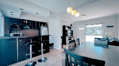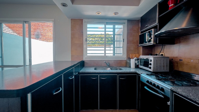 Parque- patio con parrilla. Dos habitaciones en el primer piso y un playroom amplio o tercera habitación en el piso superior.