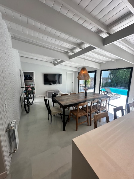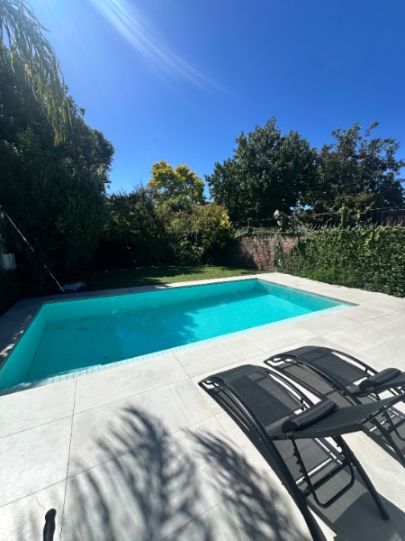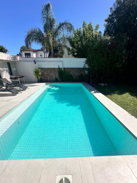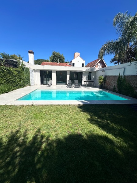 En venta casa reciclada con piscina. Posee 2 dormitorios en planta baja y uno en suite en planta alta. Garage para dos vehículos.